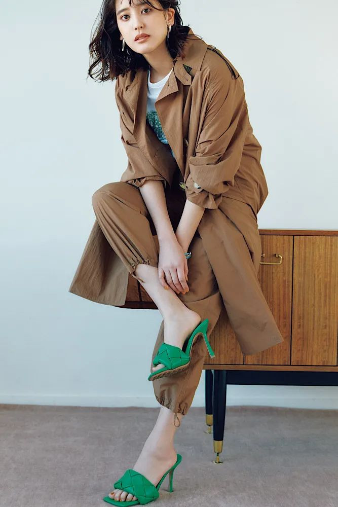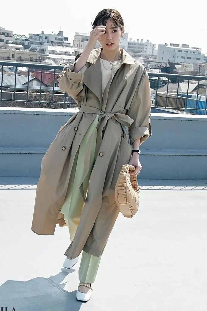有的时候,不妨试试同色系搭配,比如风衣搭配同色的裤子,整得简简单单的,还真就有那“极简还超好看”的味儿。