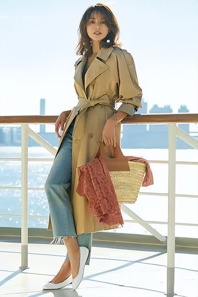 搭牛仔裤是另外一种洒脱的好看,不用刻意打扮就很好看,如果你喜欢冷清感,那就选择浅色系的风衣,将它穿在身上像秋日的晨光,不仅不会刺眼还非常舒服。