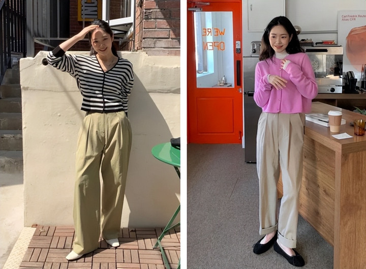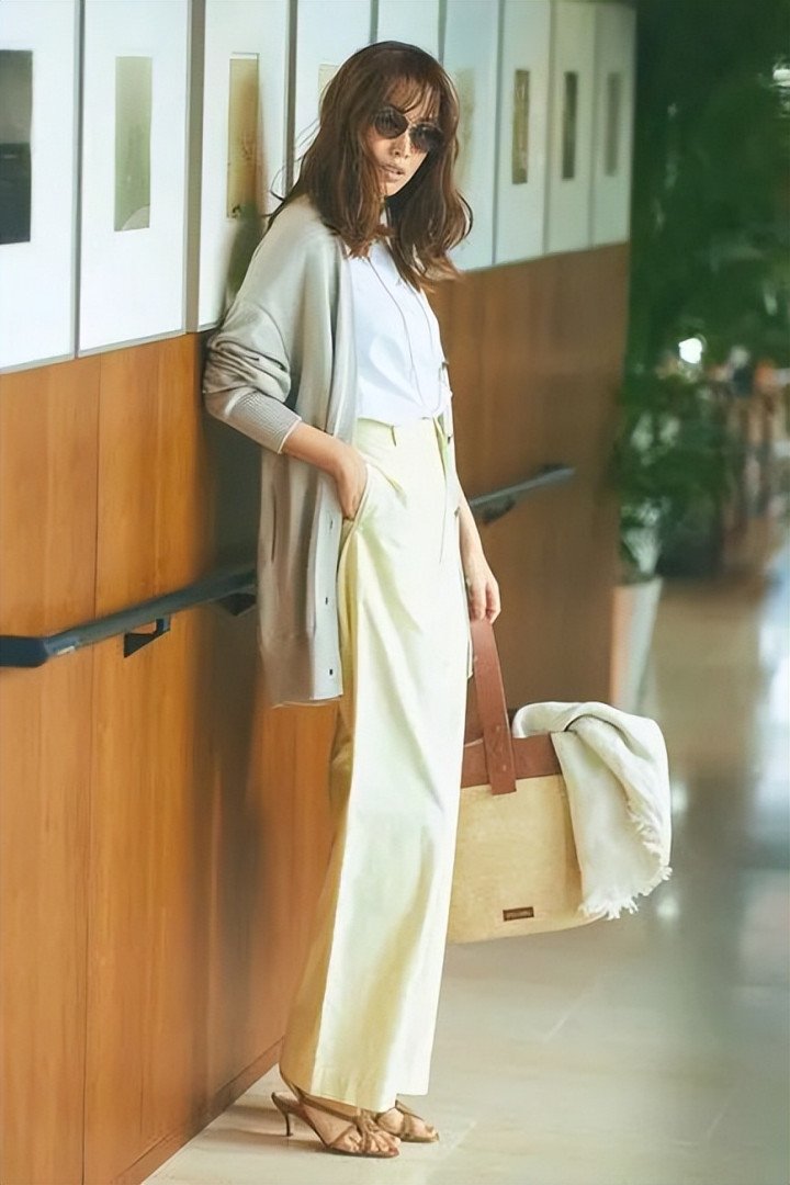 CropTop开衫真的很显腿长,拿它去搭配高腰裤或者半裙就挺合适的,没有可以扮嫩却能穿出满满的少女感。