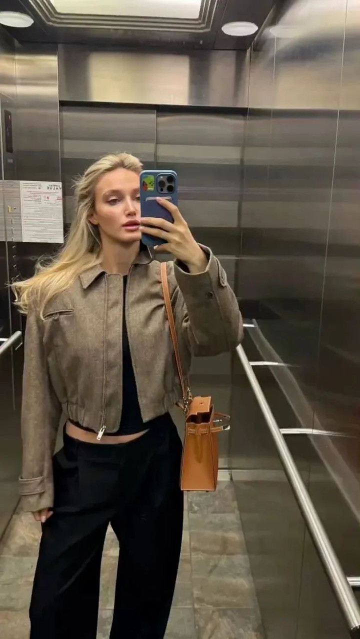 皮夹克多几分气场,早秋早晚凉,叠件针织衫或衬衫正合适,既暖又不臃肿。